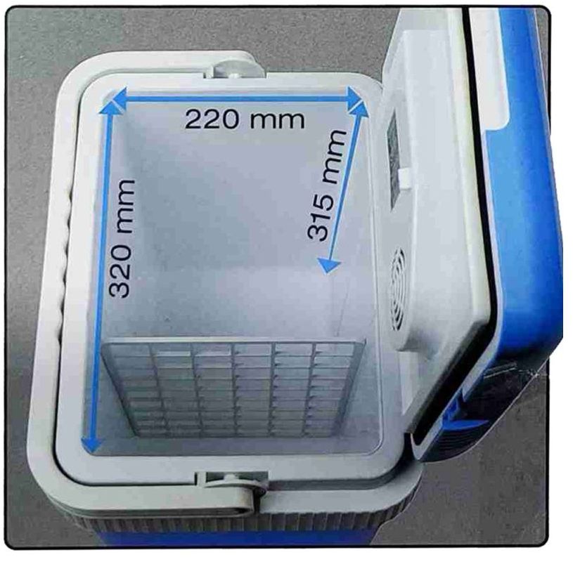 - Přenosný autochladicí a ohřívací box Aroso s objemem 24 l vhodný pro cesty, kempování i výlety.