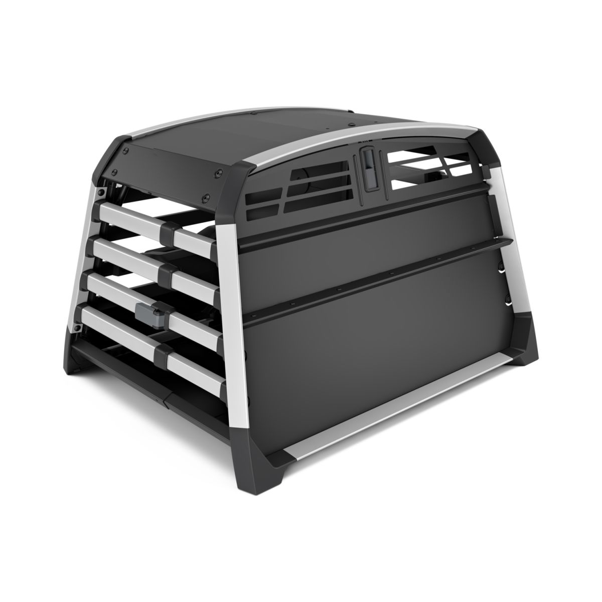 • Dva oddělené boxy se samostatnými dvířky, zámky a větracími otvory pro pohodlí každého psa.