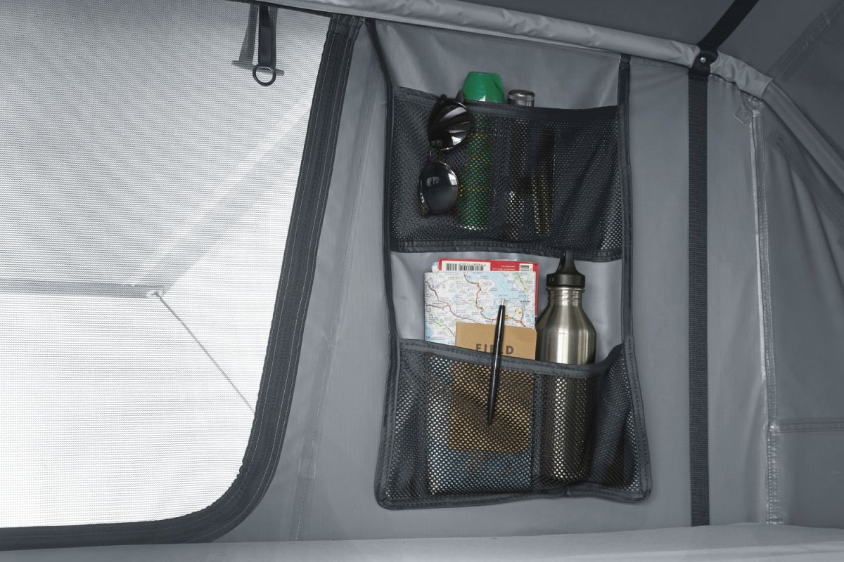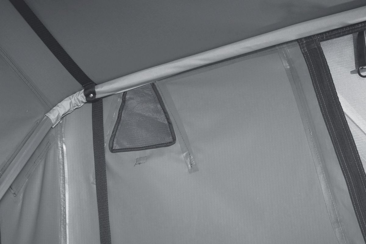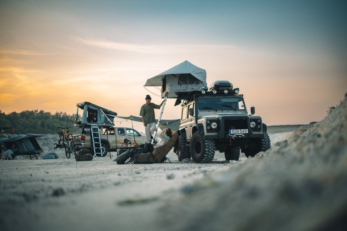 • Dvoumístný střešní stan s bočním otevíráním, který šetří místo na střeše vozu