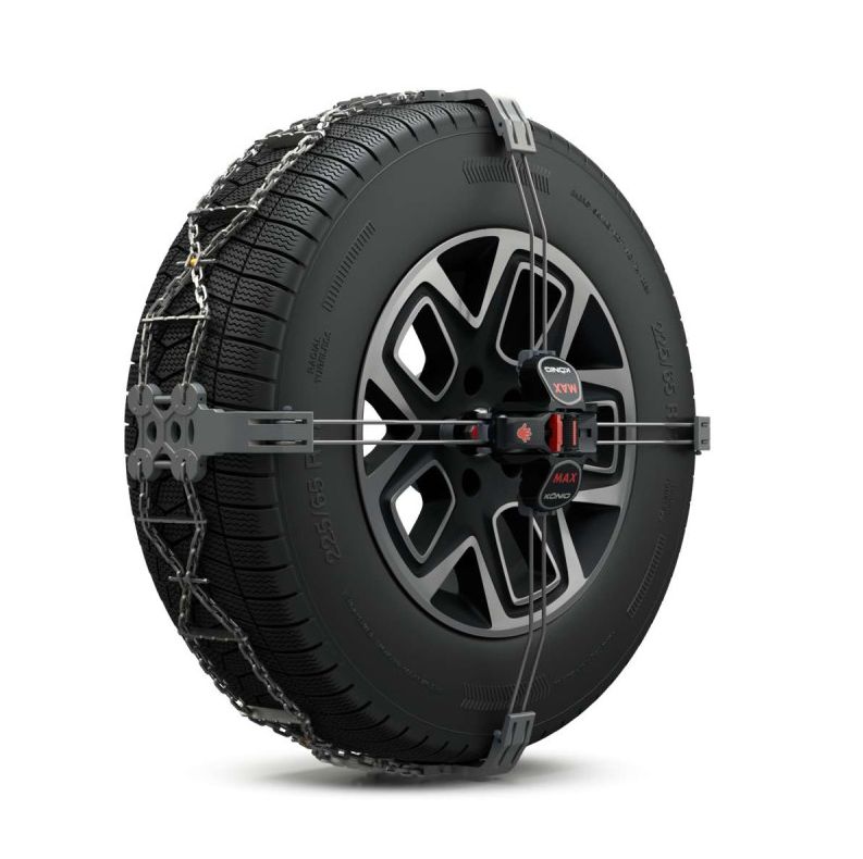 Řetězy se montují výhradně z vnější strany kola a upevňují se přímo na šroub nebo matici kola pomocí univerzálního adaptéru U-Adapt kompatibilního s rozměry 17 až 23 mm. Ergonomická fixační páka umožňuje dotažení jednou rukou, přičemž klíč K-Lock cvaknutím signalizuje správný utahovací moment.