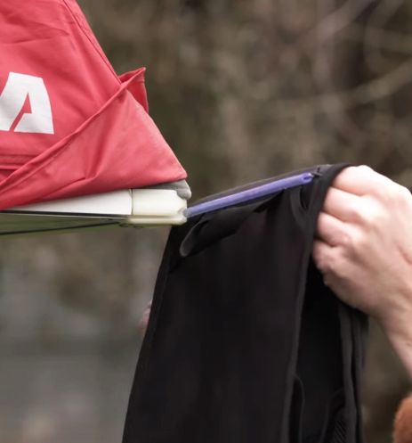 • Vyroben z pevného nepromokavého materiálu 500D, který odolá dešti i vlhkému terénu